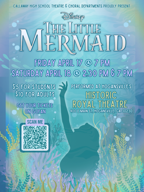 The Little Mermaid LIVE at the Royal Theater presented by Callaway High School Theatre and Choral Department, Friday April 17 @ 7pm and Saturday, April 18 @ 2:30pm & 7pm.